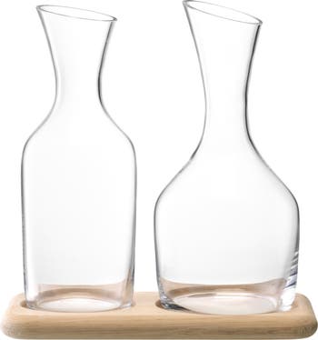 Combining handmade glass with natural oak, this contemporary set offers an elegant presentation for serving wine and cheese.