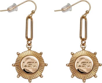 Complete your game day look with these LSU Tigers Pixel earrings. These stunning earrings feature a golden look with the LSU Tigers logo at the center. The fish hook closure will ensure these stay on while you're celebrating another win.