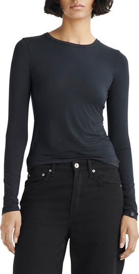 Build out your collection of season-spanning wardrobe staples with this long-sleeved jersey T-shirt cut in a crewneck silhouette designed to softly skim the body.