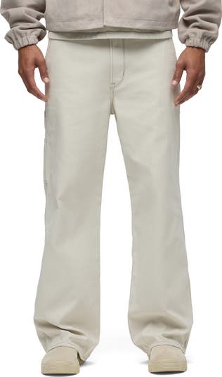 Utility pockets enhance the workwear-inspired look of these cotton carpenter pants in a comfortable wide-leg cut.
