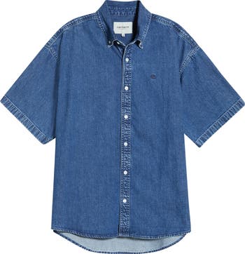 Lucas Short Sleeve Cotton Denim Button-Down Shirt