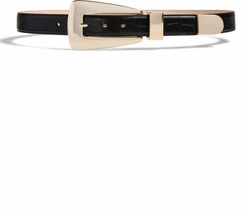 Polished, sculptural hardware secures this Italian-crafted belt made from croc-embossed calfskin leather.