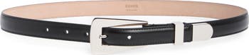 This sleek belt in Italian calfskin leather instantly elevates any look with its oversized, trapezoidal buckle and polished hardware.