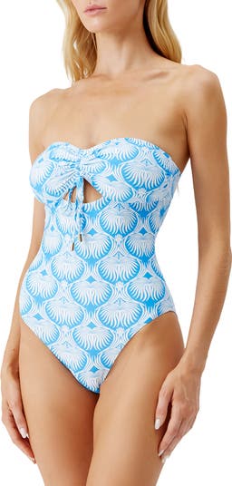Airy front-and-back cutouts sweeten this strapless lotus-printed swimsuit that's ideal for your day at the pool.