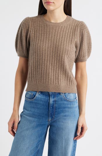 Cable knit from supersoft cashmere yarns, this puff-sleeve sweater will keep you cozy and gently dial up the drama and texture of your OOTD.