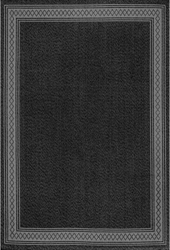 Classic meets modern in our unique solid rug with its diamond geometric border. The two-tone design is woven into a durable, low pile indoor-outdoor rug. This pet-friendly rug will add punch to your living room, dining room, bedroom, or porch.