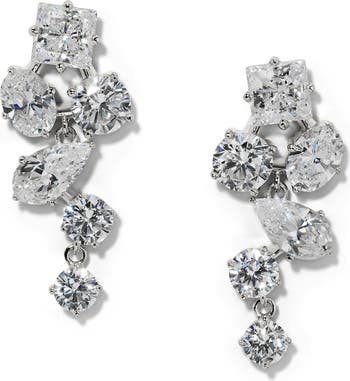 Mixed-cut cubic zirconia catch the light on these glamorous cascading drop earrings plated in hand-polished rhodium.