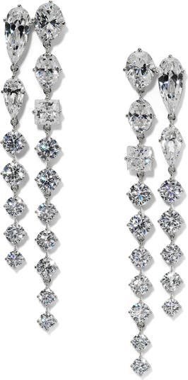 Mixed-cut cubic zirconia illuminate these glamorous linear-drop earrings plated in hand-polished rhodium for elegant shine.