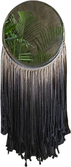 Complement your space with a cotton canvas suspended from a circular mirror. The cotton is dyed by hand. Wall hanging with tonal changes to add color accents to your home. Available in pink and black. Complement your space with a cotton canvas suspended from a circular mirror. The cotton is dyed by hand. Wall hanging with tonal changes to add color accents to your home.