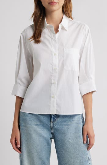 This crisp cotton-poplin shirt is framed by pleated and cuffed three-quarter sleeves to give you a polished look that's ideal for the office and beyond.
