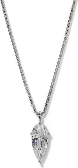 An inverted teardrop-cut cubic zirconia brings dazzling sparkle to this luminous pendant necklace plated in fine metal with a hand-polished finish.