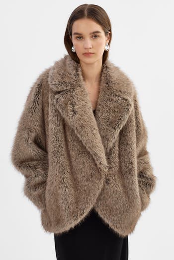 Luxe, oversized, and effortlessly dramatic. The Lucinda Faux Fur Coat is crafted from ultra-soft faux fur and features a cocooning wrap silhouette with wide lapels and a relaxed drape. Designed without closures for a fluid, throw-on feel, it's a statement piece that adds warmth and polish in equal measure.