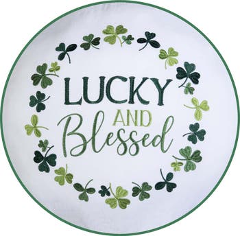 Lucky & Blessed Typography St. Patrick's Clover Embroidered Round Throw Pillow, 18" x 18"