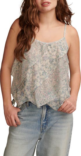 Languid ruffles angle their way across the front of this camisole cut for an easy fit from an airy fabric with a romantic, vintage-inspired print.