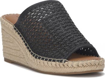 A jute-wrapped platform and wedge heel lend espadrille-inspired elements to a weekend-ready slide sandal rendered in rich leather for timeless appeal.