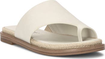 Jute braiding at the sole brings a summery vibe to this comfortable leather sandal designed with a unique asymmetric-cut vamp.