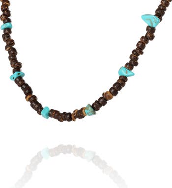 Men's Wood & Turquoise Beaded 22 Necklace, Rustic Brown with Blue Chips