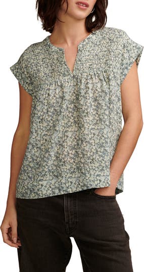 This billowy cotton top is designed with a sweetly smocked yoke and an enchanting bloom print.