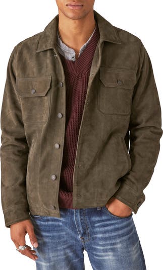 Crafted from genuine suede, this military-inspired shirt-jacket adds suave style to any outfit and features flap-patch pockets for stowing your essentials.