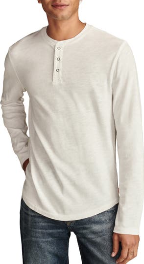 A washed finish enhances the lived-in feel of this long-sleeve henley cut from cotton-rich slubbed jersey and finished with an easy snap half placket.