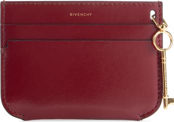 A slender skeleton-key charm is delicately engraved with Givenchy's minimalist logo on a slim card case crafted from creamy Italian calfskin.