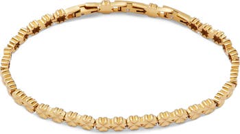 Manifest positive vibes and good fortune with this Lucky Clover Charm Tennis Bracelet, which features gold-tone four-leaf clovers inline on an adjustable-length bracelet. Because it’s gold-tone stainless steel, it’s durable and tarnish resistant for everyday wear. Layer it with other symbols of good fortune as a reminder that you make your own luck.