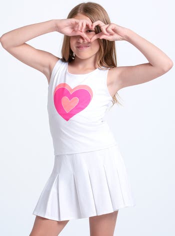 She'll serve up aces and looks in this twist-back tennis tank. Fun heart design, ultra-soft performance fabric and a built-in liner for modesty and comfort, so sheíll feel as fabulous as she looks.