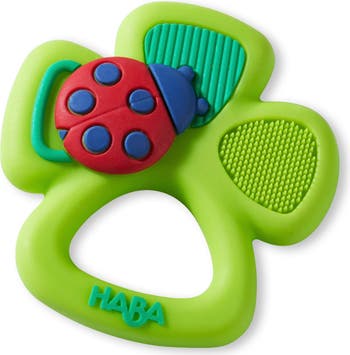 Introducing the HABA Lucky Shamrock Silicone Teether Toy, the ultimate solution for teething babies aged 6-18 months. This teething ring is not only safe for your little one but also promotes sensory development in a fun and engaging way. The Lucky Shamrock silicone teether is designed to provide extensive chewing pleasure, ensuring that your baby's teething needs are met. Say goodbye to uncomfortable teething pains and hello to soothing relief with this innovative teething toy. One of the standout features of this teether is its easy-to-clean design. Simply pop it in the dishwasher or wash it by hand for quick and convenient cleaning. This ensures that your baby's teething toy remains hygienic and safe for regular use. Made from high-quality silicone, this teething ring is not only safe for your baby but also encourages manual motor skill development. The Lucky Shamrock is the perfect combination of fun and functionality, making it a must-have for parents looking for a reliable teething solution. Say goodbye to teething woes with the HABA Lucky Shamrock Silicone Teether Toy. Order yours today and give your baby the gift of safe, soothing, and engaging teething relief.