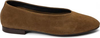 Handcrafted in Spain from soft suede, this minimalist ballet flat features a refined almond toe and cushioned insole for versatile comfort from day to evening.
