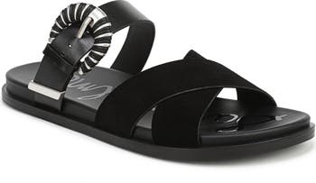 Sleek straps amplify the contemporary poise of this buckle-embellished sandal that's an effortless casual go-to.