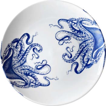 Truly in a league of her own, our favorite cephalopod has wrapped her arms around our finest creamy white premium porcelain, bringing a sense of deep-water whimsy to the table. Elegant, playful and beloved by all, Lucy the octopus adds a special touch in classic blue and white. Gently curved in creamy white premium porcelain, the coupe dinner plate is a contemporary shape with a slim profile that allows for serving large portions while stacking neatly in the cupboard.