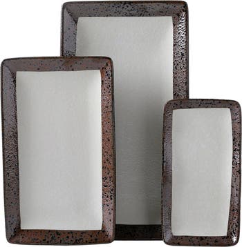 If you feel your dining table is missing a little something, the Stone Lain Lucy dinnerware serving piece set might just be it! Crafted from porcelain, this collection features beautiful . Lucy is designed to fit seamlessly into almost any decor style. This Lucy serving plate set includes 3 narrow rectugular pieces; 6.5-inch, 9-inch and 11-inch. Durable and ready to be used, these dishes can withstand the test of time.