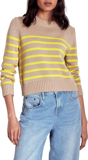 Bold stripes add a bit of whimsy to this chunky cotton sweater that's slightly cropped for a modern silhouette.