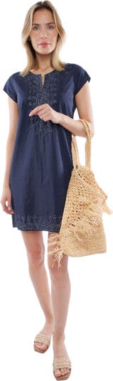 Our beloved Lucy dress goes everywhere in midnight blue and sails into the evening.