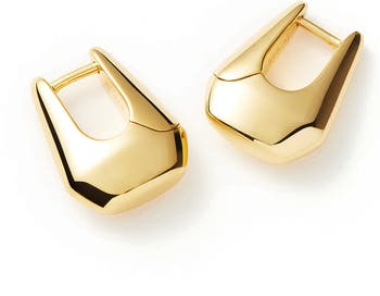 Angular hoops shine in a golden light and bring a modern flourish to your lobes.