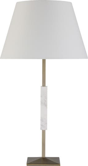 Crafted with Volakas marble and brushed metal, this dimmable table lamp fills your space with an ambient glow and makes an elegant accent piece.