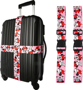 - Official License Disney Travel Accessories: Add an extra layer of security to your suitcases with this pair of Minnie Mouse luggage straps. A fun-loving Minnie Mouse print covers the pink suitcase belts for cute Disney style.