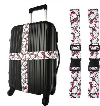 • Official License Hello Kitty Travel Accessories: Add an extra layer of security to your suitcases with this pair of Hello Kitty luggage straps. A white, pink, and red Hello Kitty print enhances the suitcase belts for cute Sanrio style.