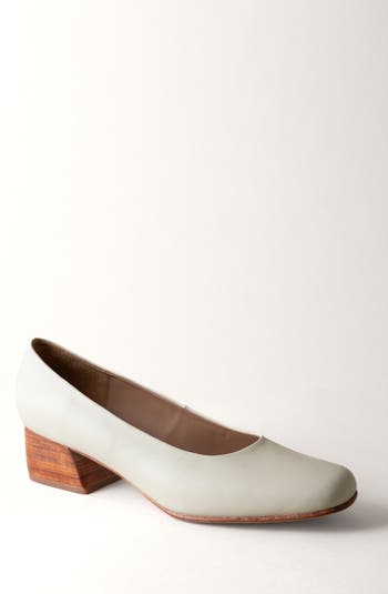 A classic silhouette updated with a low block heel and a rounded square toe.