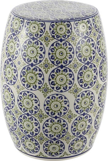 JONATHAN Y Lula 17.25" Suzani Ceramic Garden Stool, Main, color, Blue/Green