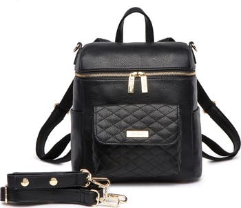 Keep everything you and your little one need in this spacious diaper bag designed with nine different pockets and compartments for organizing. The adjustable backpack straps allow for different carrying options when your hands are full, and the stain-resistant faux-leather exterior is easy to clean. The luxurious satin lining keeps all of your things safe and easy to spot.