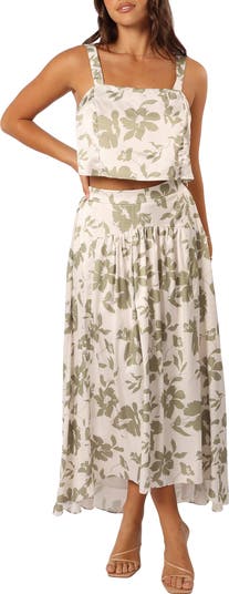 Win admiration at brunch in this charming two-piece set that pairs a cropped tank with a tiered maxi skirt.