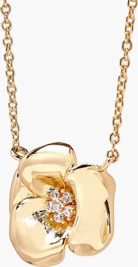 Introducing our Lulu Necklace in Gold, featuring a beautifully raised, realistic flower with organically curved leaves. The chubby, sculpted petals create a bold, eye-catching design, contrasted by a delicate diamond-cut chain for an elegant balance. At the heart of the flower, sparkling crystals add a touch of brilliance, making this piece the perfect blend of nature-inspired artistry and refined sophistication.