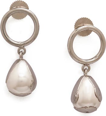 - Material: 22k gold-plated or white rhodium-plated brass with baroque shell pearls.