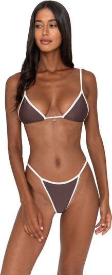 A sleek triangle bralette with a micro fit. Featuring over-the-shoulder adjustable straps, a tie-back closure and a custom gold FAE charm, it offers both comfort and style in one chic package. Crafted in the finest quality sustainable Nylon.