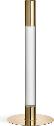 Clear crystal and mirror-like metal create a striking modern display for your favorite candle