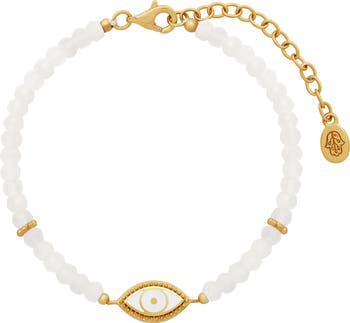 Luminous Harmony Rainbow Moonstone Evil Eye Gold Bracelet