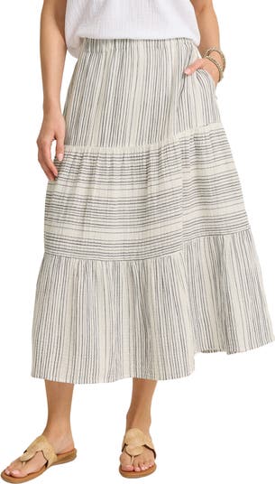 Double-layered cotton guaze is punctuated with shadowy stripes on a flouncy tiered skirt that's part of the Island Soft collection.