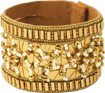 This wide bracelet brings texture and shine to everyday ensembles with a polished finish and light-reflecting glass beads.