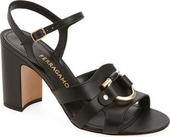 Inspired by the wrought‑iron gate of Ferragamo’s original Florentine headquarters, a statement-scale Gancio hook gleams atop this smooth Italian-calfskin sandal with Y-shaped straps that hug the ankle for a secure fit.